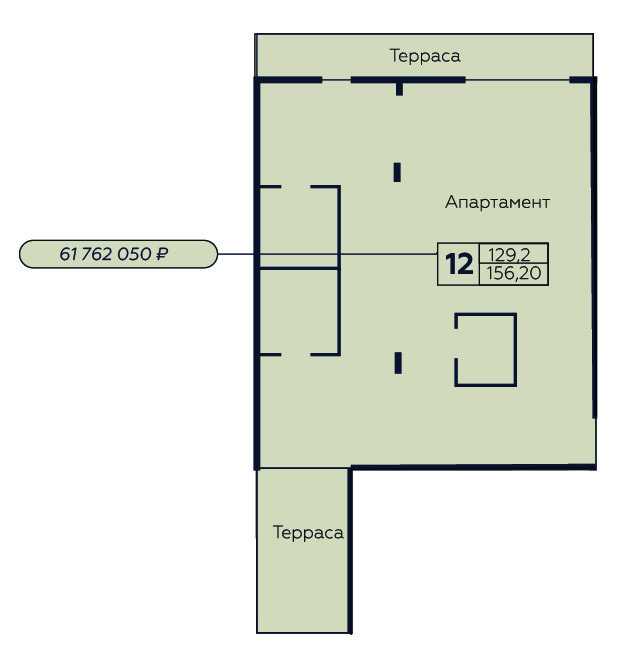 Квартира площадью 129,2 м² с террасами на две стороны дома. Внутри есть две мастер-спальни и уютная кухня-гостиная для теплых вечеров с семьей.